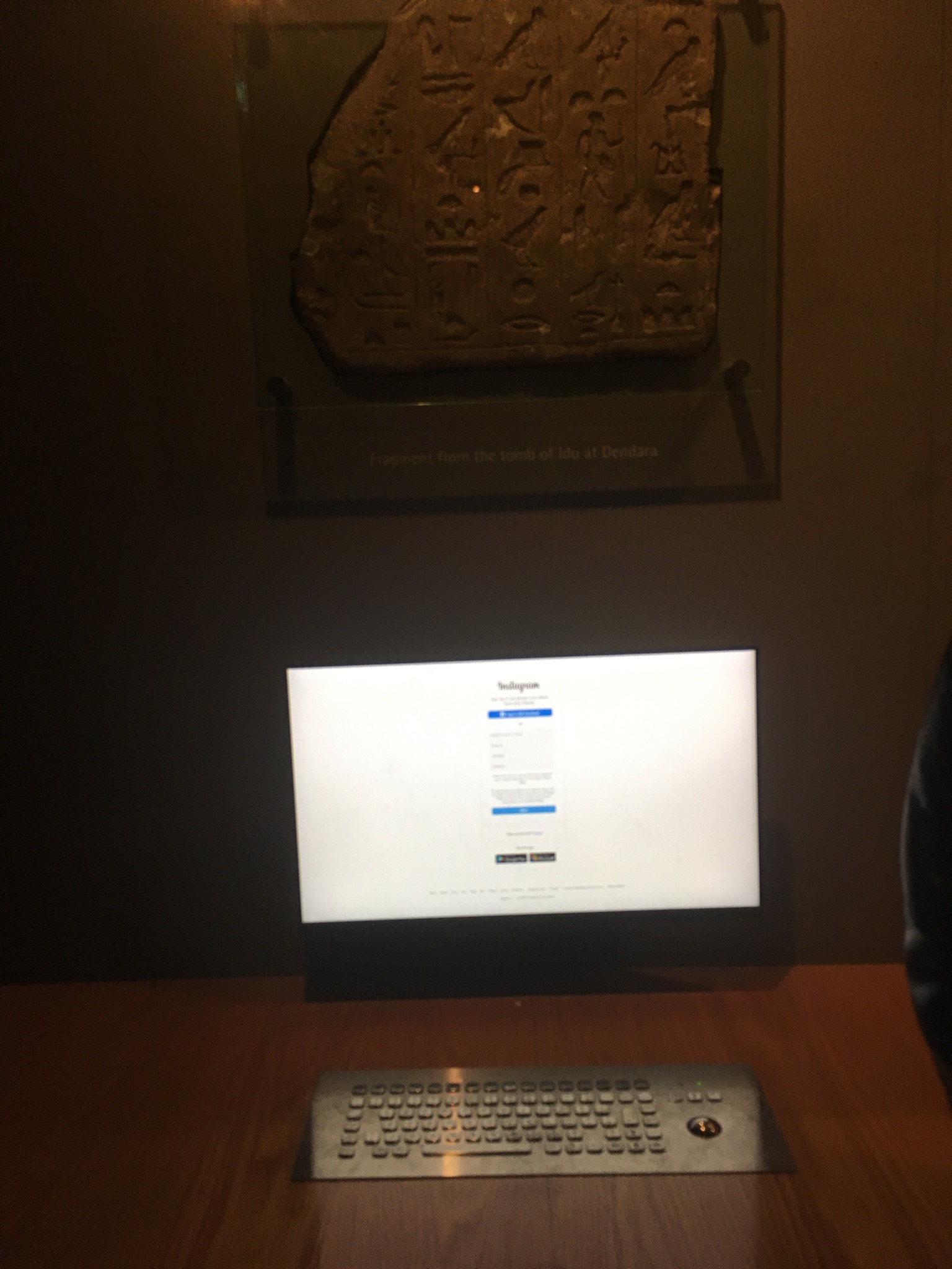 In the ancient Egypt exhibit (questionable...are these stolen artifacts Britian? Don't lie to me...) someone had hacked into the informational computer to log in to instagram. I have no idea how they did it because there was no way to close out of the interactive informational page, but it made me laugh.