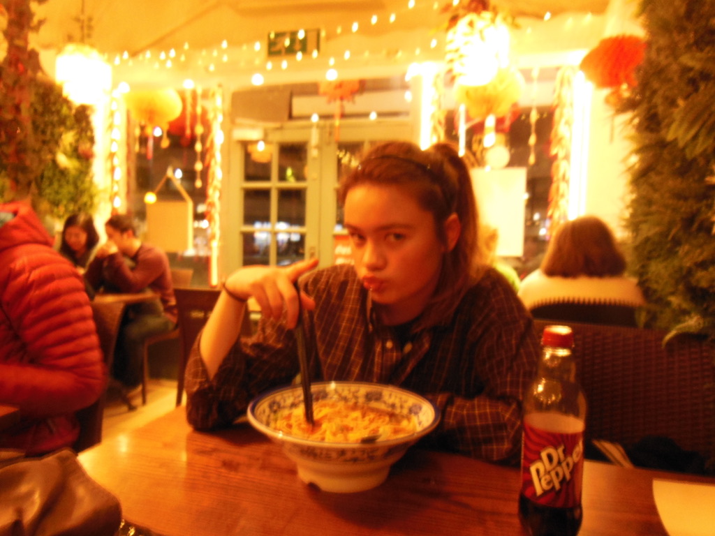 Our next destination to somewhere to eat and after a quick reddit search I find Chili Daddy. Shout out Chili Daddy. I would say reddit is one of the most reliable places for cheap food recommendations, it's truly the power of the people. One thing I also appreciated about my travel partner Amna is that she was just as invested in saving money as I was. Nothing worse than going on a trip with someone who can throw money around and expects you to do the same. We were successful penny-pinchers on this trip. Chili Daddy is a Szechuan-style Chinese resturant and it is delishhhhhh. I had never had Szechuan Chinese food before so that was exciting and it was the huge bowl of noodles for 8 pounds it was glorious. I think food is just absurdly expensive in the states because I swear it would have been at least 12 bucks in the states for ho wmuch food it was. What is up with the states?? I get the pork hot pot noodles and we are happy campers. There is even extra to take home yum. It's such a cute resturant too, 10/10 go there if you are in Bristol. On the way back we stop by Tescos to get some cheap alcohol (sorry family). DO NOT GET THE TESCO BRAND VODKA FOR 6.80. Like you can probably guess, it is nasty, not safe for ingestion it tastes like industrial cleaner and it is probably just mouth wash. But we drink it back at the hostel and dance at the bar downstairs, and it's a good time. I'd like to point out that I am wearing jeans, a polo shirt, a flannel, and my hair is up in a pony tail with a headband. Oh man lesbian alert, lesbian alert!! Seriously I was not fooling anyone lol, first night out in England and I've decided to look like a total lezbo. Hehe all according to plan.