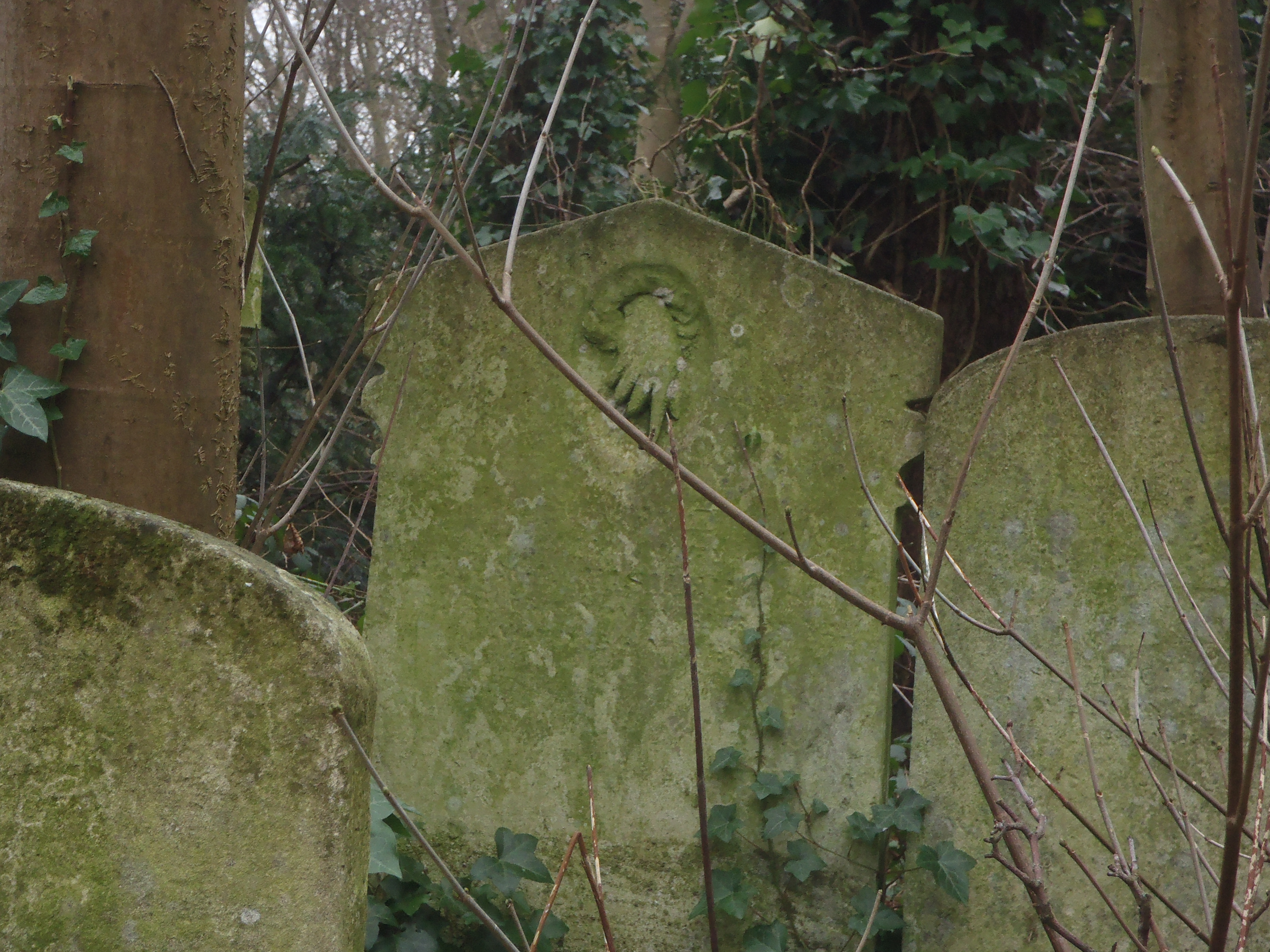 It was absolutely freezing cold and I had decided to wear my shorts and tights with a flannel and cardigan. Not my best decision. Golly and I was just going on and on about how I dislike looking cool. I am nothing more than human. But while I was on my feet it was fine. I brought my camera with me (sadly, my better camera's battery is totally shot I just had to order a new one) and I took lots of pictures. I love pictures of cemeteries. These pictures are nothing to write home about (although I guess that is what I am doing now), but hopefully I will be back again with my better camera. It was almost surreal to walk around the park. I kept thinking how beautiful it was and how my pictures weren't capturing just how green the moss was. All the graves toppling over eachother, it was like out of a fairytale or something. It's also weird to have something like this in the middle of a city. It got me thinking about just how old London is. That is a loooooottt of history. Kind of overwhelming, especially as an American. Well as a white American. I was also thinking about all these people buried hundreds of years ago and I wondered if any of them had ever resurfaced. Had anyone ever been eroded out? Or do they just get deeper and deeper, more and more dust and dirt deposited on them. Now that I think about it I guess it's probably the latter.