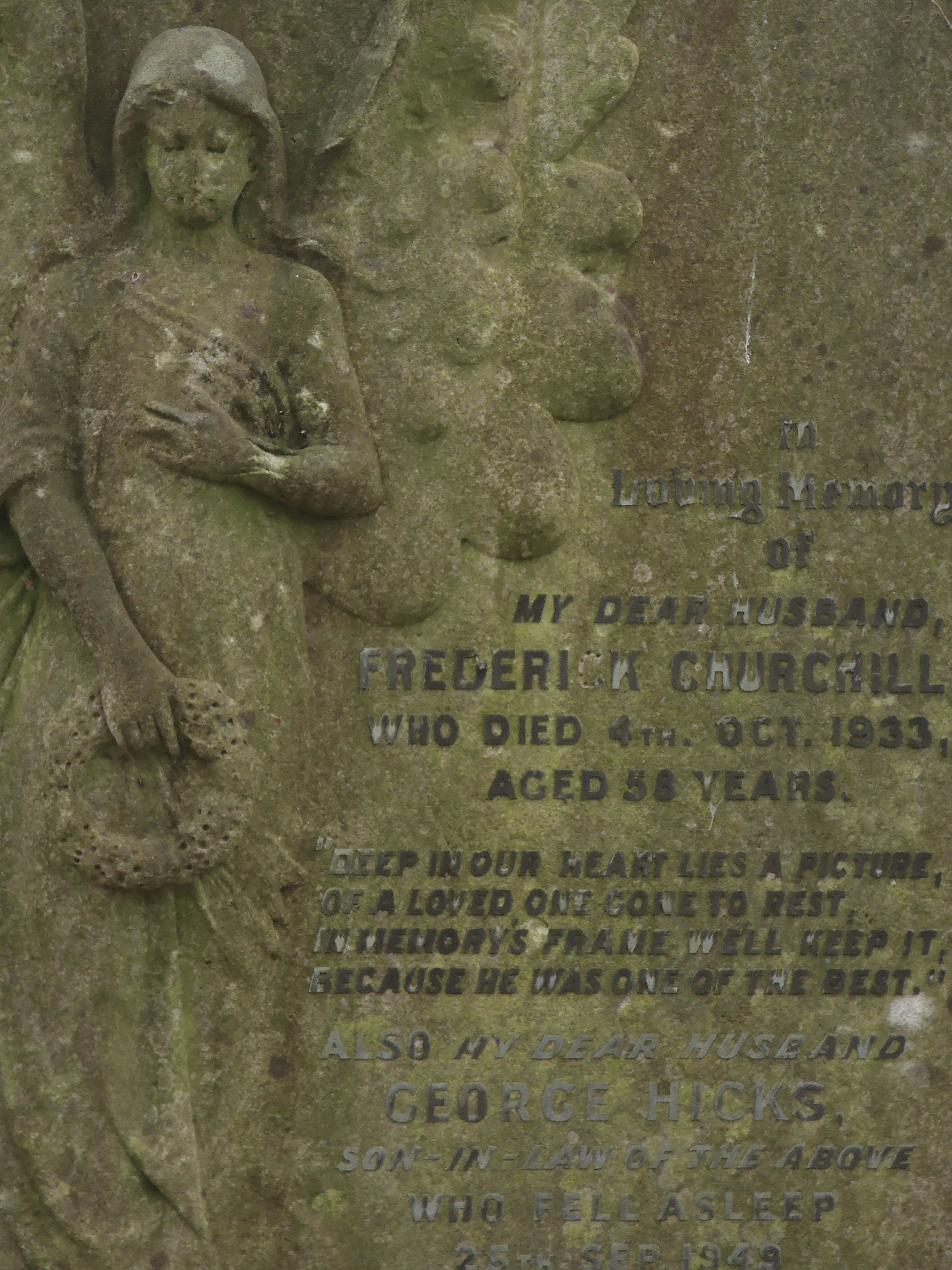 This one is so old it says nothing at all. It stands alone. I wonder who was buried here...
