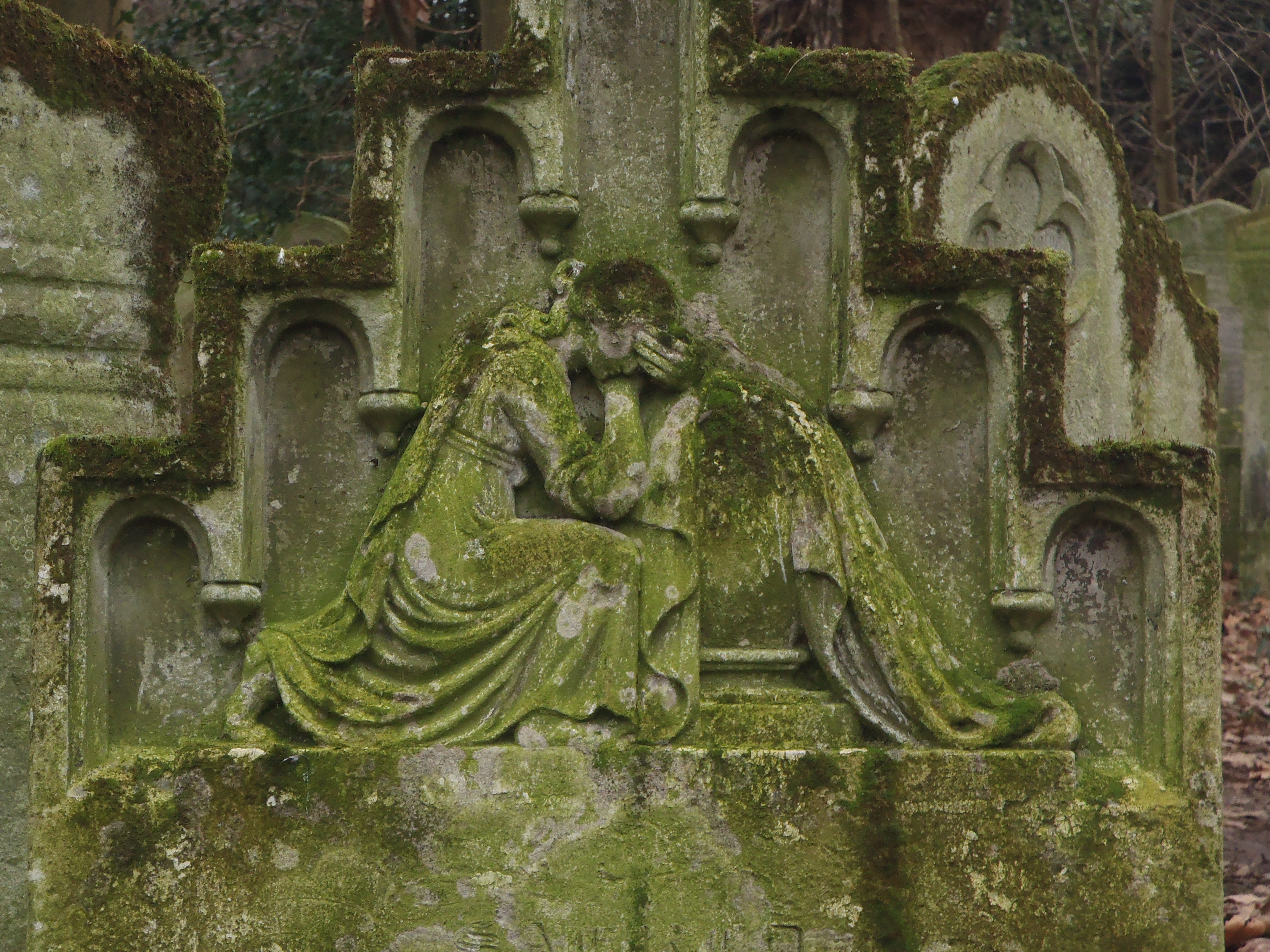 I love cemeteries because they are the ultimate liminal space, but they don't feel that way, at least to me. They are for both the living and the dead and the veil is nothing but dirt. So the ground you walk on in a cemetery is a floor and ceiling. Transformative, ambigous. And so they are scary, but I feel that they are comforting. Their ambiguity is certain and counted upon. I like a place that is full yet empty. It's like an invisible weighted blanket. The dead bring me peace. Because they are not physical, I imagine they read my mind. For my final research project in one of classes I was researching Sufi celibates which brought me to many pieces about Sufi dervishes and Qalanders who would go naked and lie on graves totally still as if they were dead. They would do this for as long as they could, no food or water. Just silence and stillness. They felt that to get closer to God they should get as close as they could to death because that was the ultimate enlightening or escatic experience. I find this admirable. There are also many records of Muslim and Christian women weeping at saint's graves as a form of worship. I am also inclined towards grave dwelling as a spirtual experience. It was a bit too cold for me to go naked though.